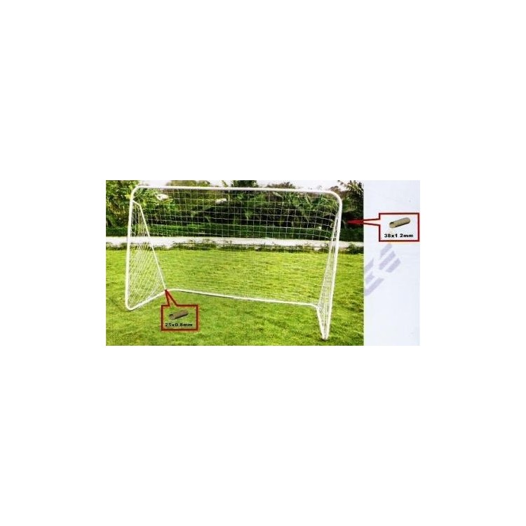 VOETBALGOAL 38 mm dikke ijzersterke stalen buis 300cm breed 205cm hoog 120cm diep,dus geen kleine uit een speelgoedwinkel vanaf 5 jaar tot ?? jaar Grote stabiliteit door achterwaartse steunen en voorzien van ophanghaakjes voor het bijgeleverde voetbalnet Geschikt voor TUIN , CAMPING, enz.